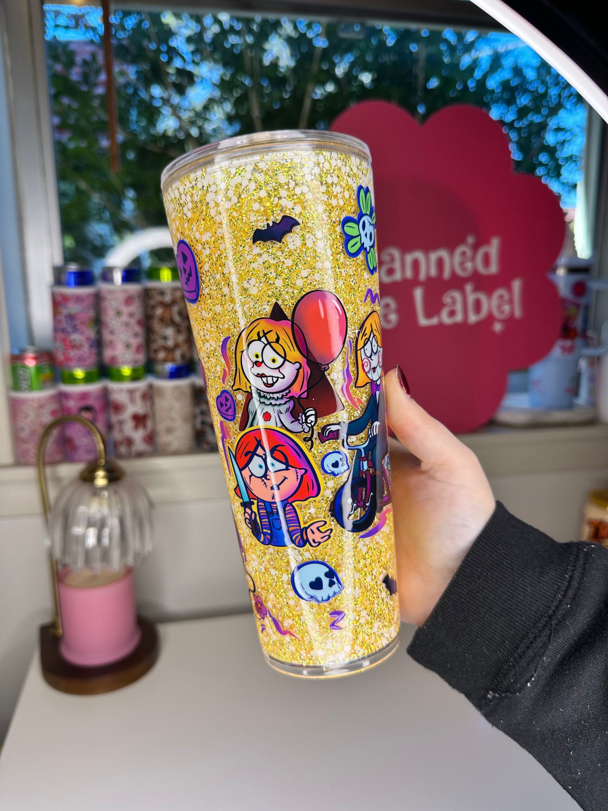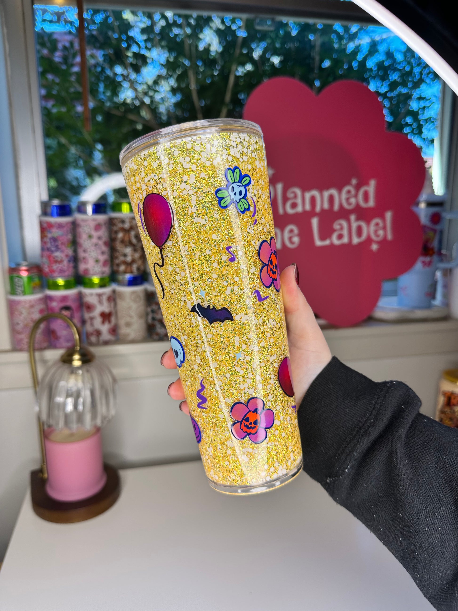 Bubble glitter with a side of chunky in this gorgeous halloween tumbler. Suspended flow.
